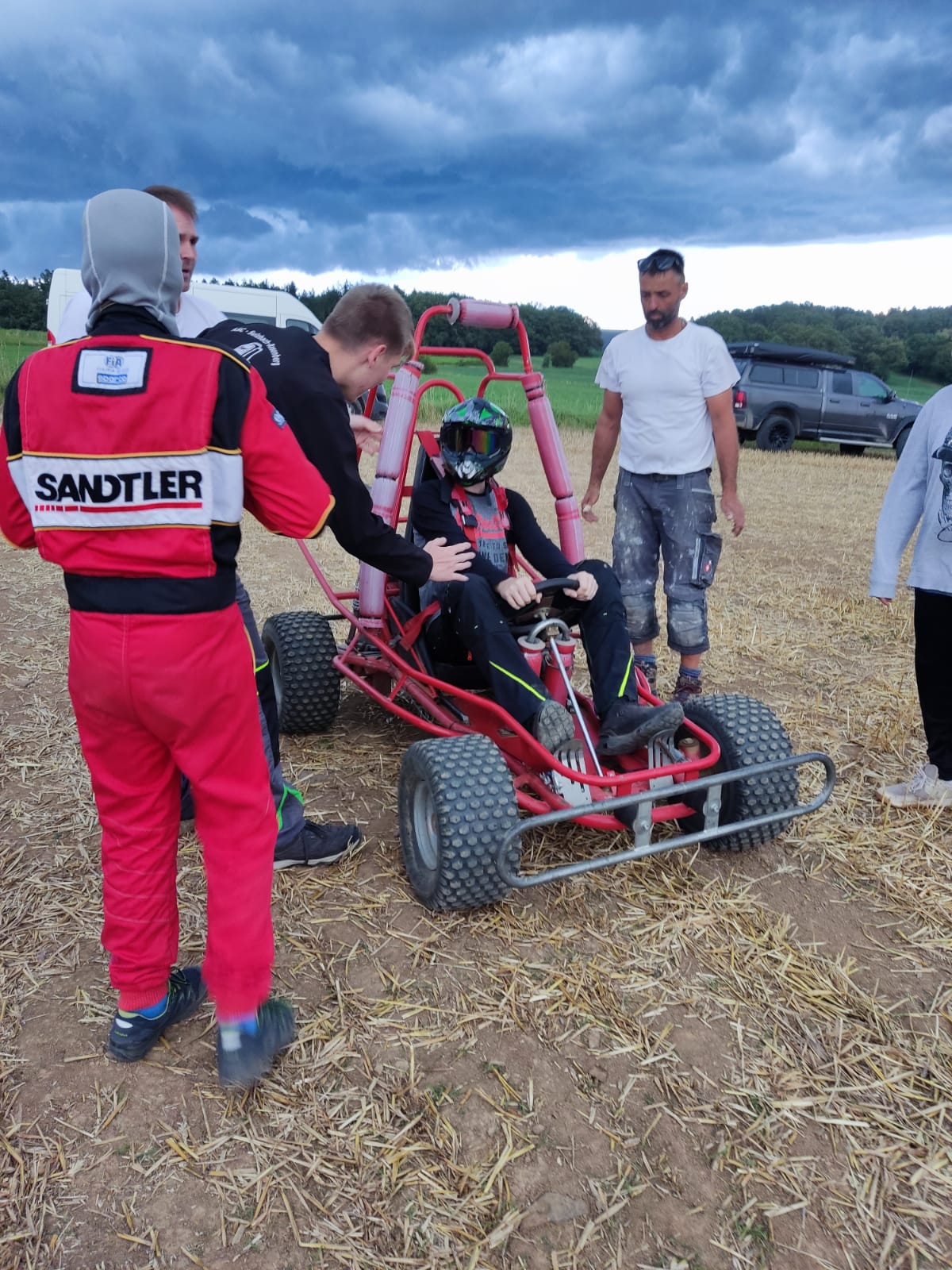 letzte Anweisungen vor dem Start des ersten Cross-Kart der Klasse 17 | |